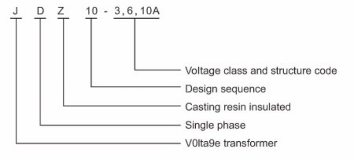 J = napetostni transformator, D = enofazni, Z = lita izolacija iz epoksi smole, 3/6/10 = nivo napetosti.
