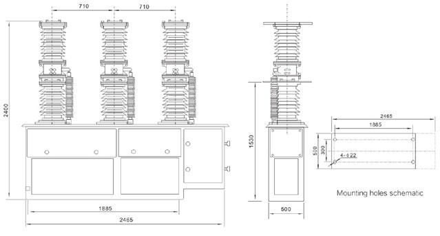 6. Zunanji visokonapetostni AC VCB ZW7, ki je posebej zasnovan za onesnažena okolja razreda IV, se lahko uporablja v kompleksnih industrijskih območjih in krajih z resnim zunanjim onesnaženjem.